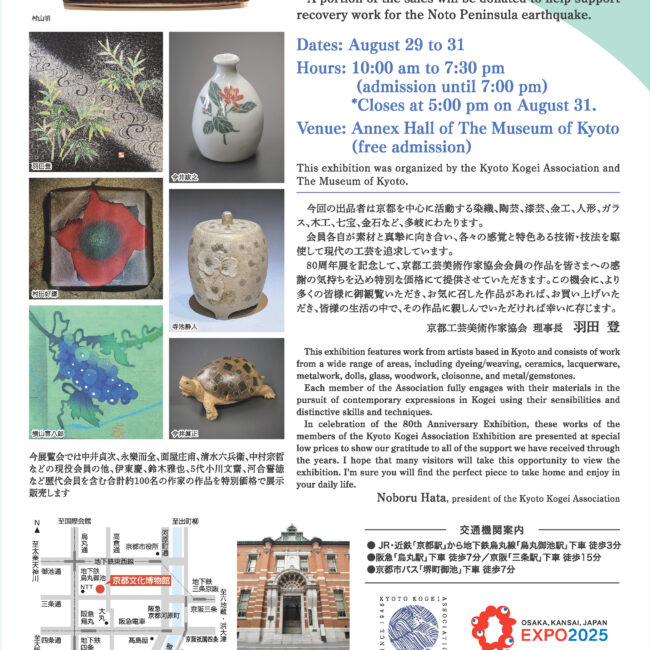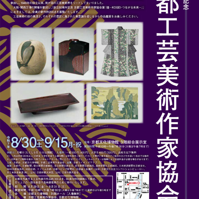 創立80周年記念京都工芸美術作家協会展:終了しました Posted at h in 今までの展示会 by roseki 0 Comments 0 Likes [social_share] 終了しました:創立80周年記念京都工芸美術作家協会展 2025京都文化博物館 会場2025令和7年9月15日に京都文化博物館 会場での展覧会は終了しました。関連する逸品展(京都、伊賀巡回)を含めまして、会期中には多数のご来場賜りご高覧いただきまして誠に有難うございます。画像は展覧会会期中の様子です。